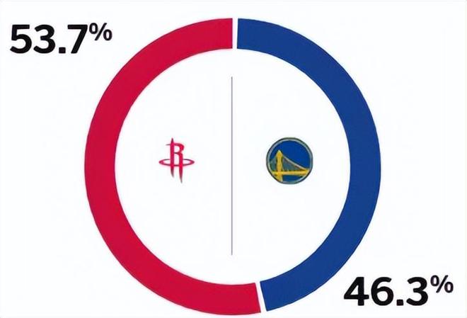 赛前,美媒ESPN对本场比赛进行了胜率预测,火箭队胜率为53.7%,勇士队胜率则仅有46.3%,稍占劣势。